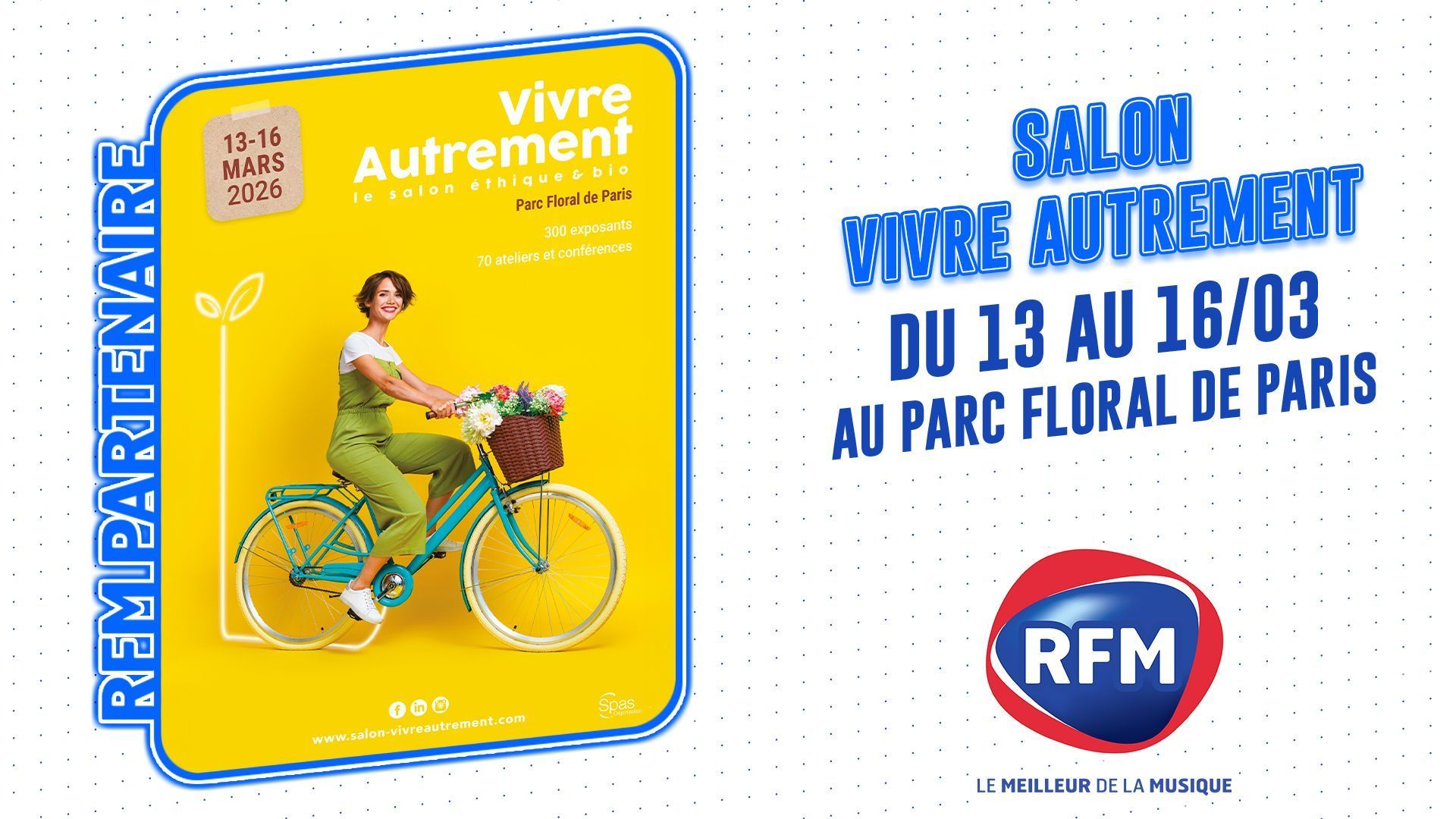 Le Salon "Vivre Autrement" s'installe à Paris du 13 au 16 mars 2026 au Parc Floral de Paris. En partenariat avec RFM.
